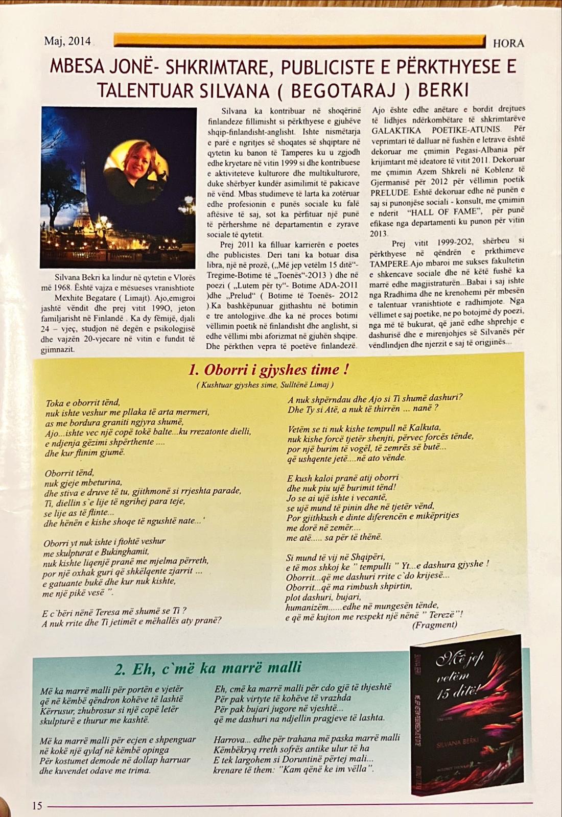Silvana Berki 56-v on albanialais-suomalainen kirjailija, runoilija, kääntäjä ja sosiaalityöntekijä YTM, joka syntyi vuonna 1968 Vlorëssa, Albaniassa. Hän muutti Suomeen pakolaisena vuonna 1991 ja asettui Tampereelle. Berki opiskeli sosiaalityötä ja suoritti yhteiskuntatieteiden maisterin tutkinnon. Tällä hetkellä työskentelee sosiaalityöntekijänä Lapsiperheiden sosiaalityössä Pirkanmaan hyvinvointialueelle (Pirha) ja samalla rakentaen kirjallista uraansa.
